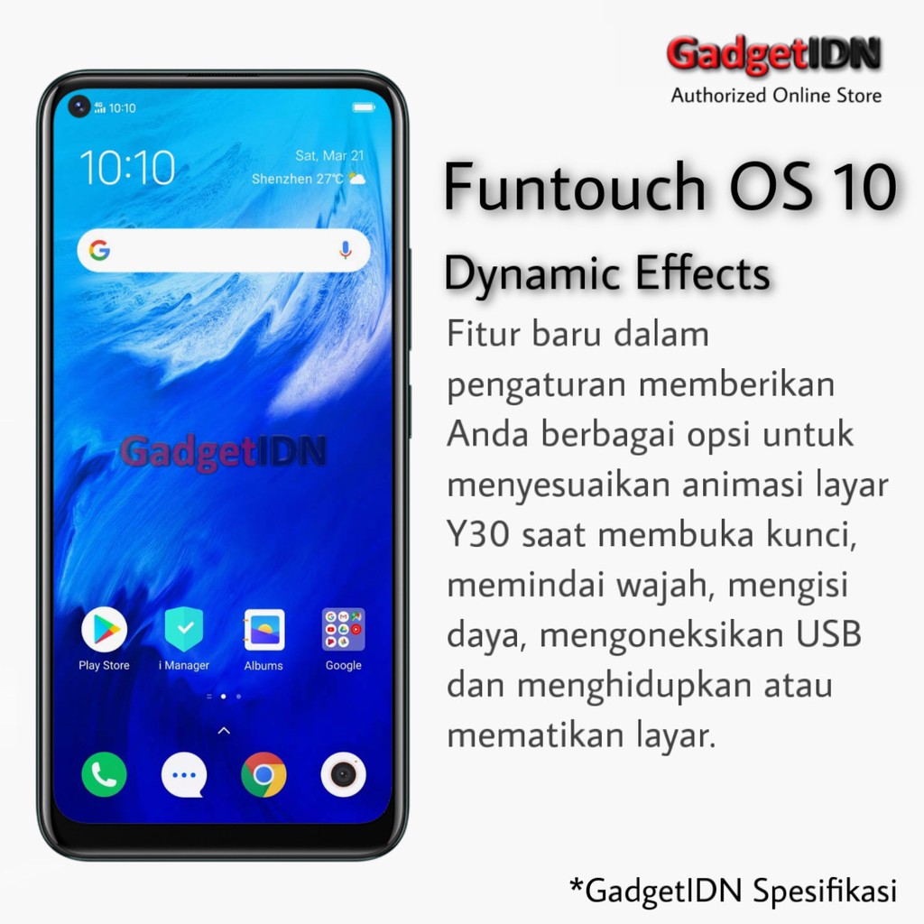 Smartphone ini memiliki bentang layar 647 inci dengan desain punch hole yang berfungsi sebagai lokasi kamera depan. B rand ponsel yang menempati posisi ke-2 terbaik di Indonesia versi IDC Q4 2019 vivo Indonesia kembali memperkenalkan ponsel barunya vivo Y30. Untuk bagian memori HP Samsung ini mengandalkan memori sebesar 128 GB.